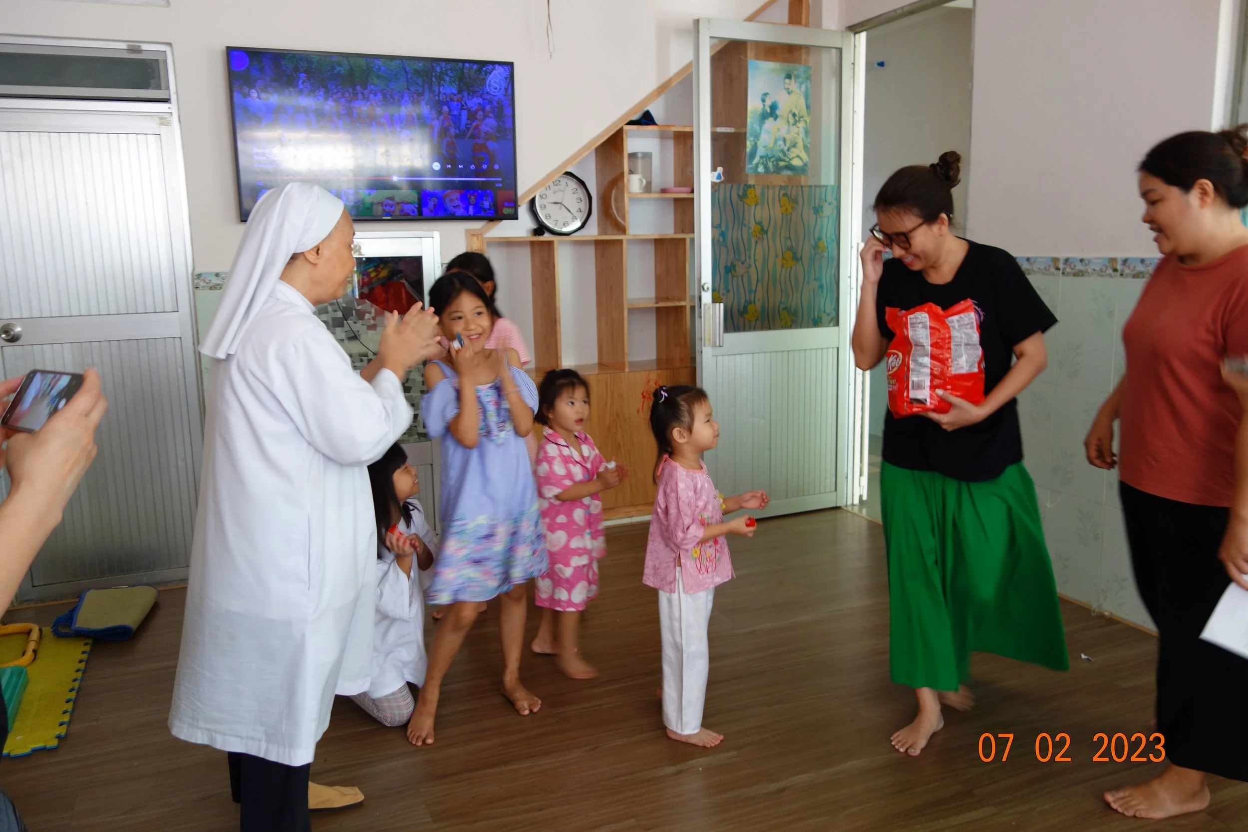 The Do Family & a selected few family and friends went back to Vietnam in July 2023. We printed & handed out new MamaDo Foundation shirts to all the children, nuns and priests. We brought back medicines, milk, rice and treats for the orphanage. We met some new faces & a few of the children remembered us from our first visit waving hello 👋 and welcoming our family with warm hugs. We were so touched. The children are so joyful and open to share their day & meal with us. 🥹